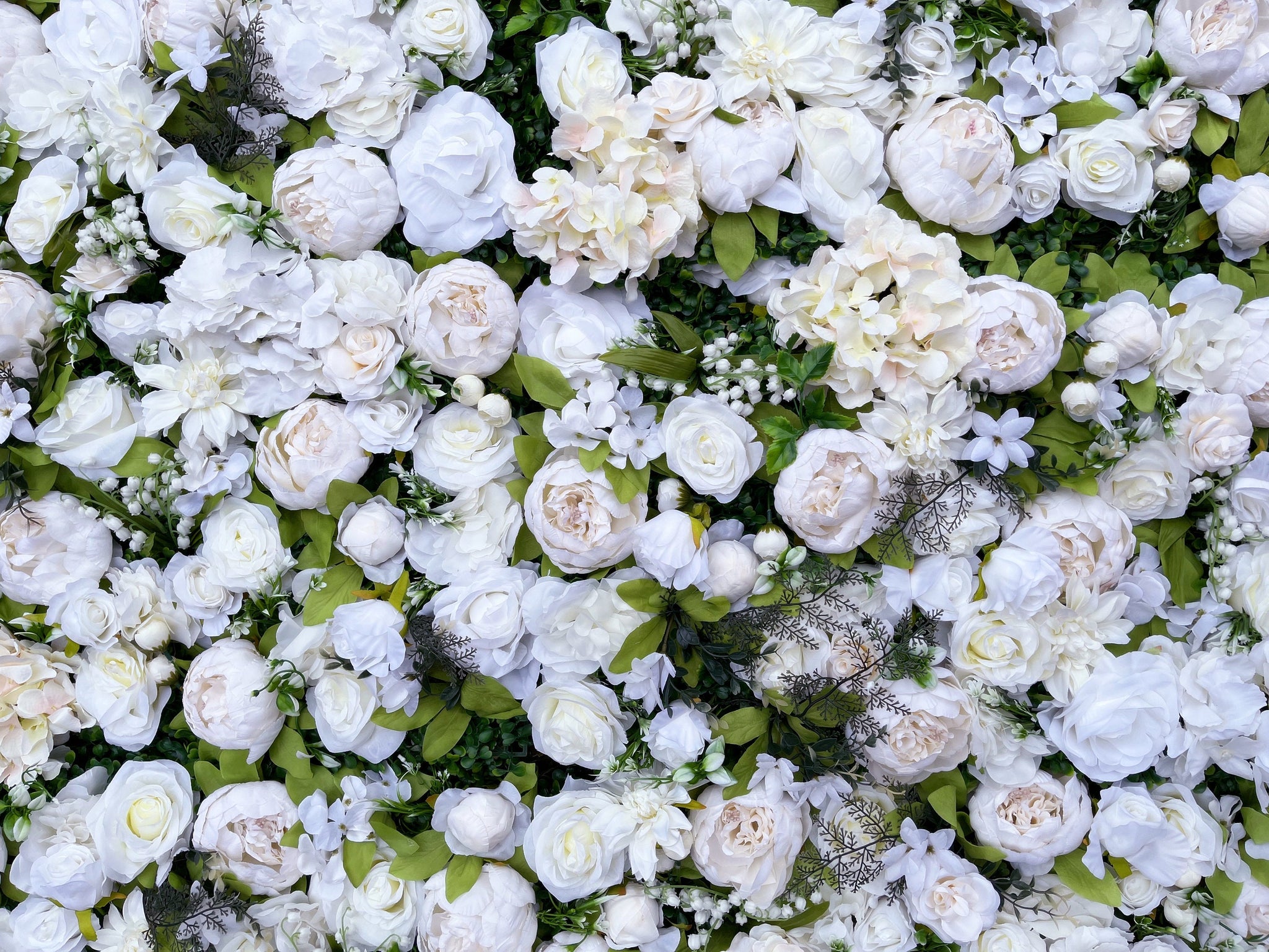 A: Each of our flower and greenery panels are 16in x 24in. For example, if you "Select a Size" and choose the 4 panels option, you will receive four 16”x24” pieces that can be arranged into a 32”x48” wall.
