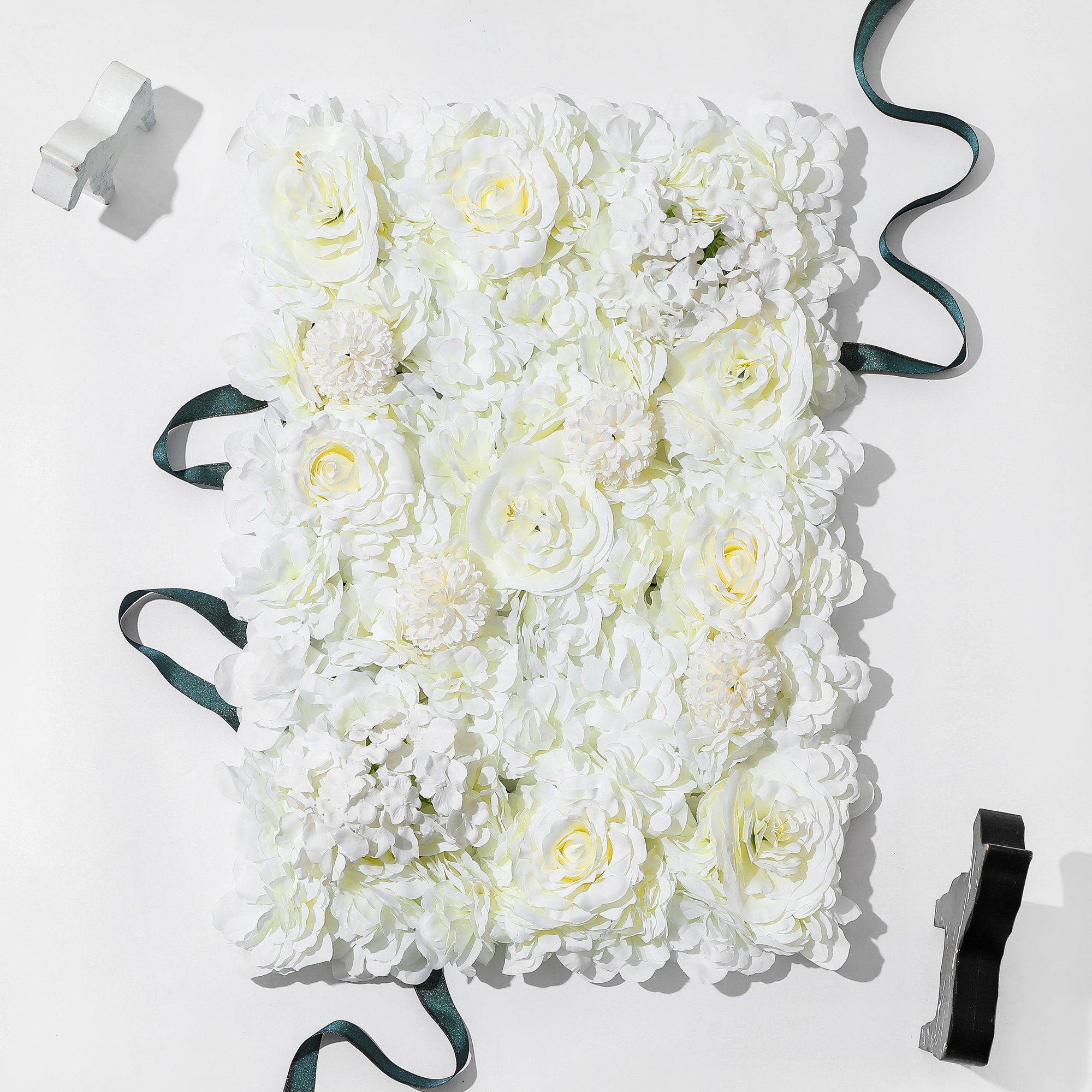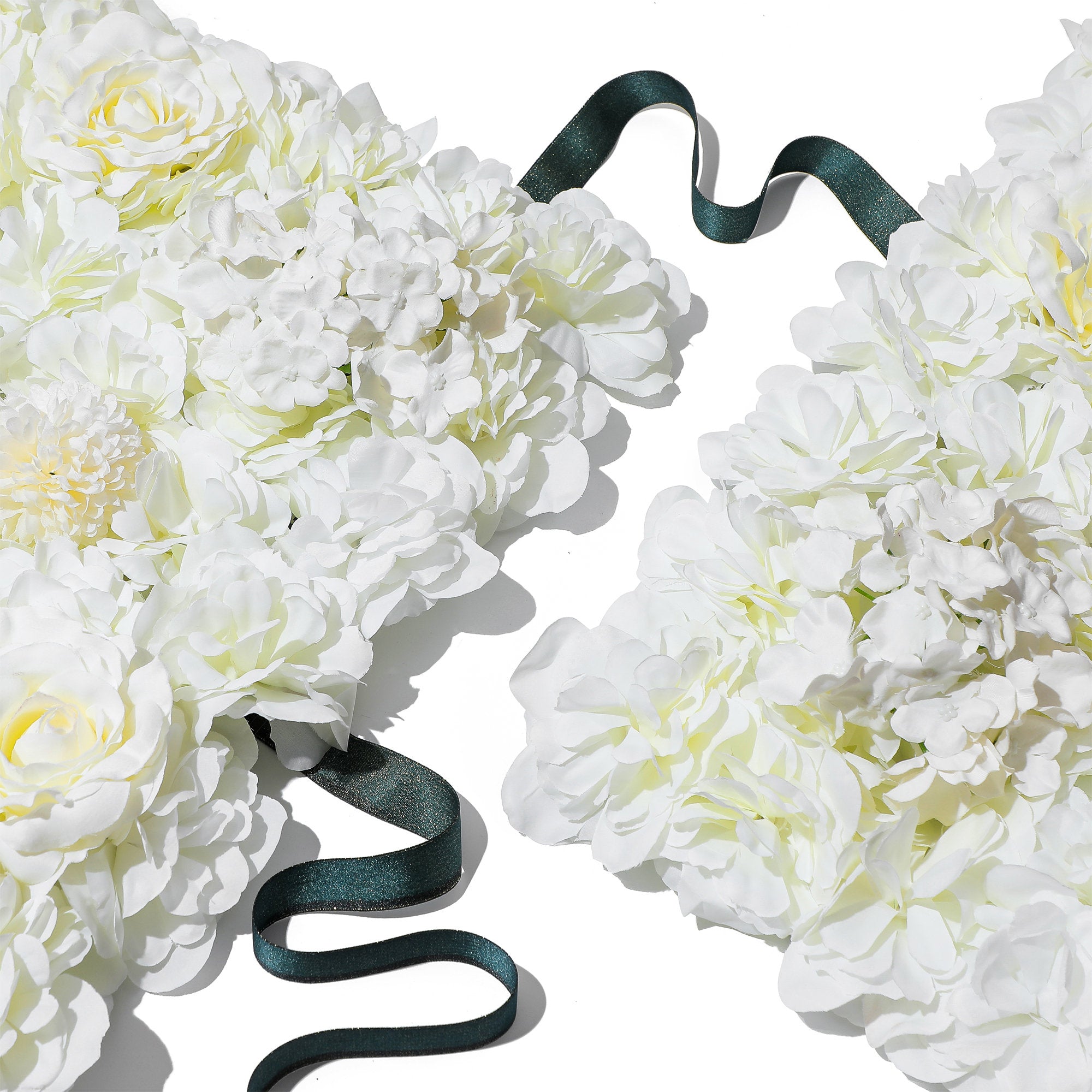 A: Each of our flower and greenery panels are 16in x 24in. For example, if you "Select a Size" and choose the 4 panels option, you will receive four 16”x24” pieces that can be arranged into a 32”x48” wall.