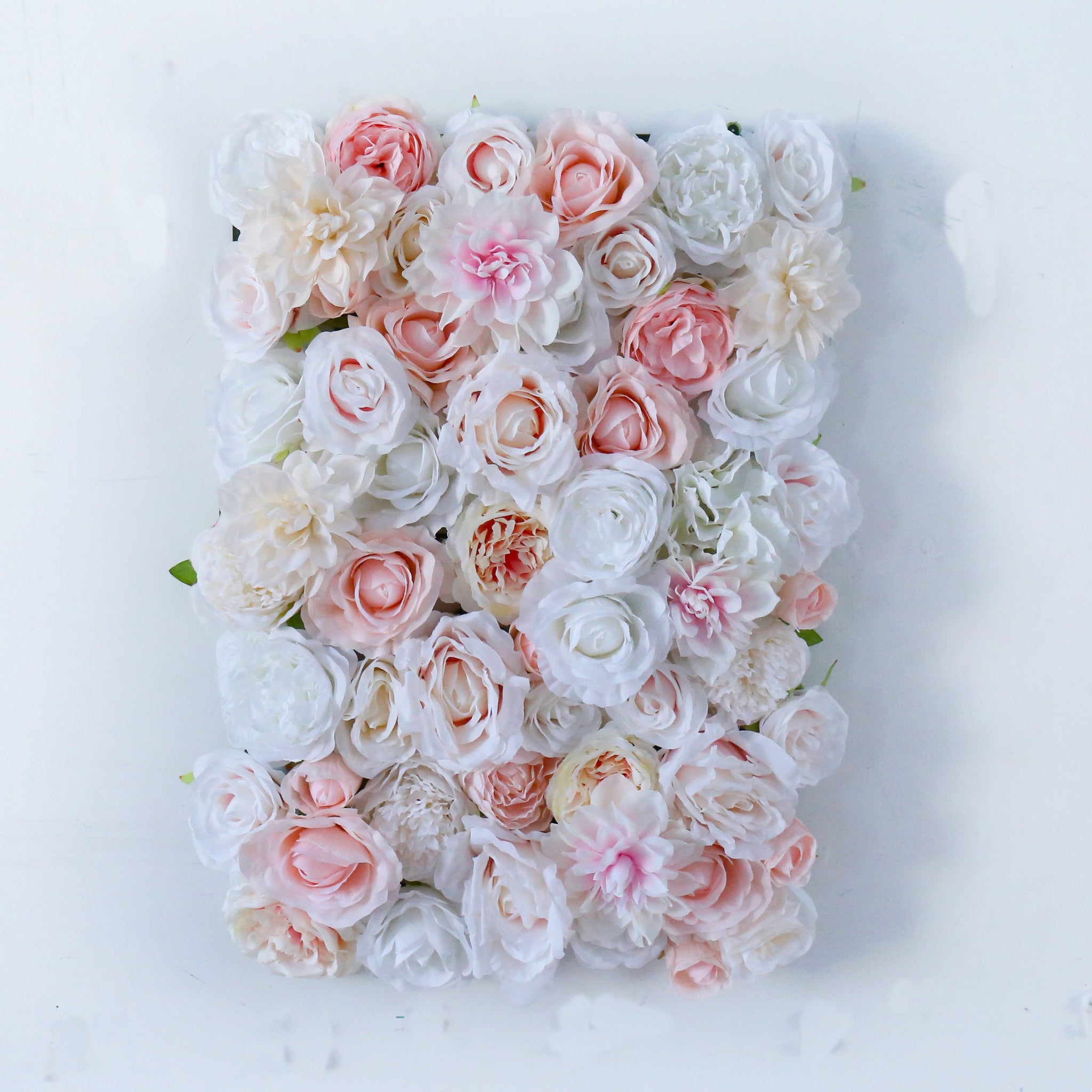 A: Each of our flower and greenery panels are 16in x 24in. For example, if you "Select a Size" and choose the 4 panels option, you will receive four 16”x24” pieces that can be arranged into a 32”x48” wall.